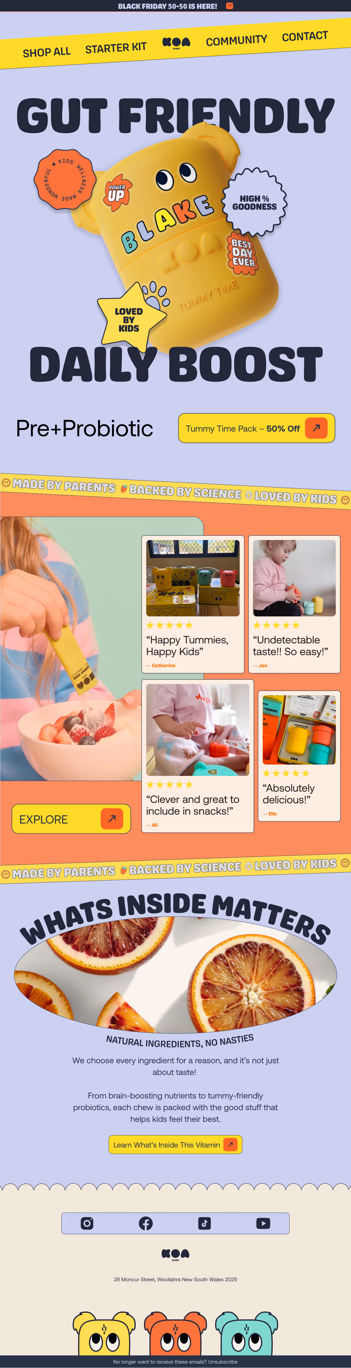Variations of Email headers, text blocks, product layouts, CTAs etc.